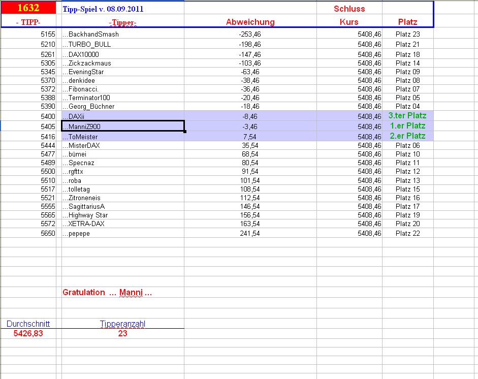 1.633.DAX Tipp-Spiel, Freitag, 09.09.2011,17.45 Uhr, DAX ....???