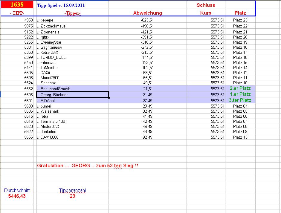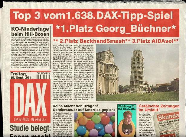 1.638. DAX Tipp-Spiel, Freitag den 16.09.2011, 17.45 Uhr, DAX 5.573,51
