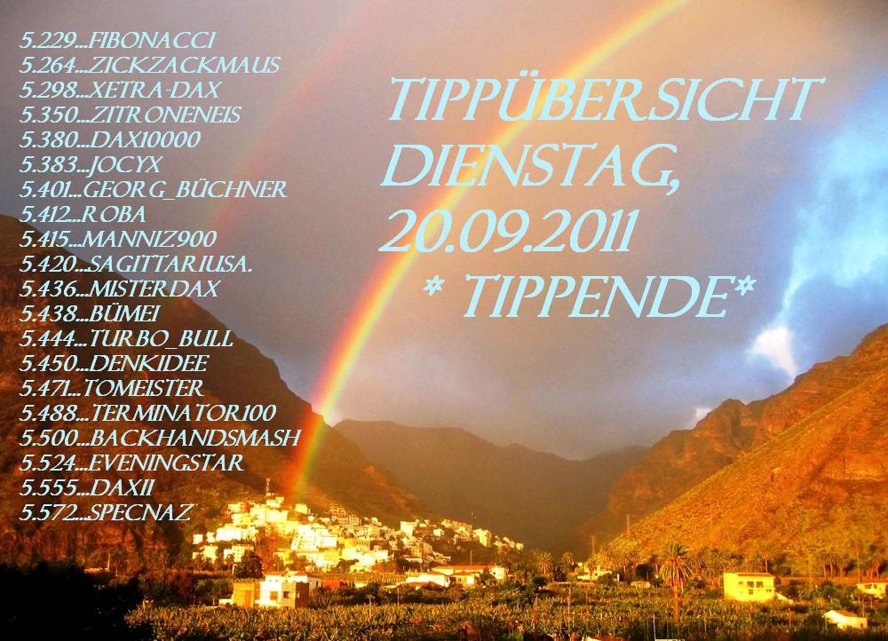 Tippübersicht Dienstag, 20.09.2011 * TIPPENDE*