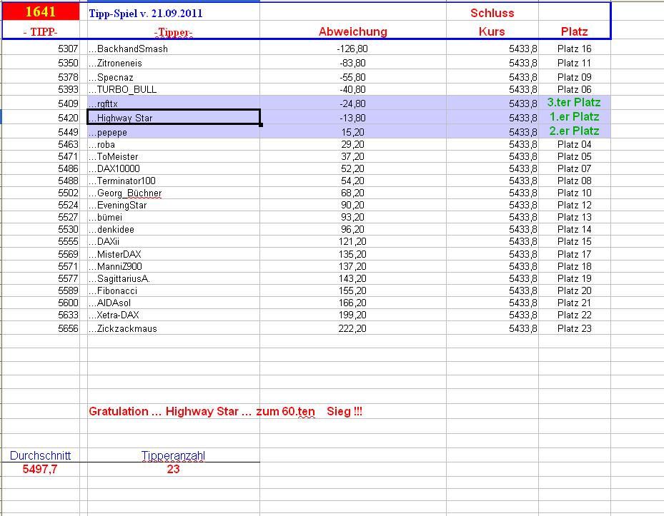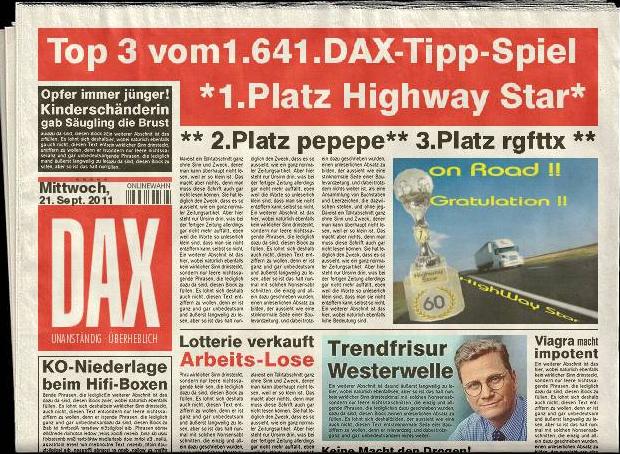 1.642.DAX Tipp-Spiel, Donnerstag, 22.09.2011,17.45 Uhr, DAX ....???