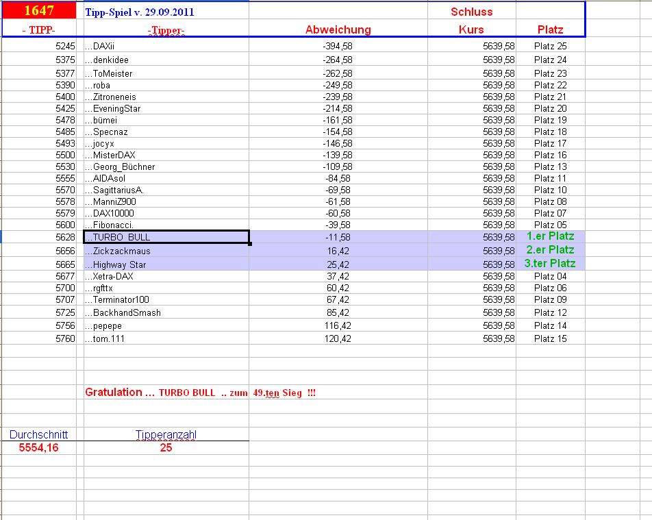 1.648.DAX Tipp-Spiel, Freitag, 30.09.2011,17.45 Uhr, DAX ....???