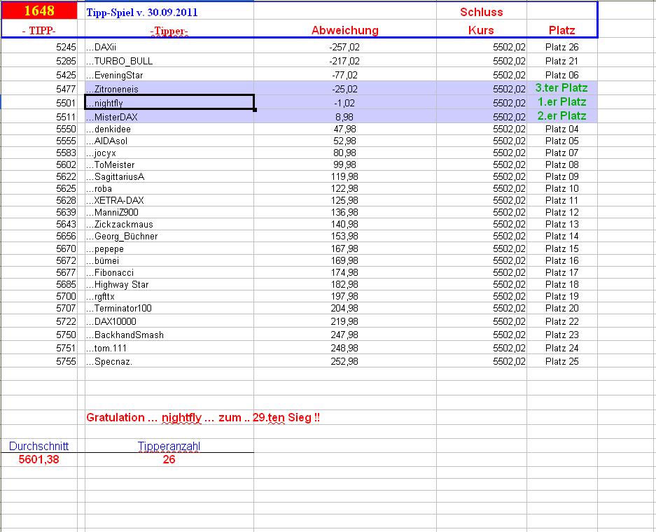 Gewinnerlinks 1.648. DAX Tipp-Spiel, Freitag 30.09.2011, 17.45 Uhr, DAX 5.502.02