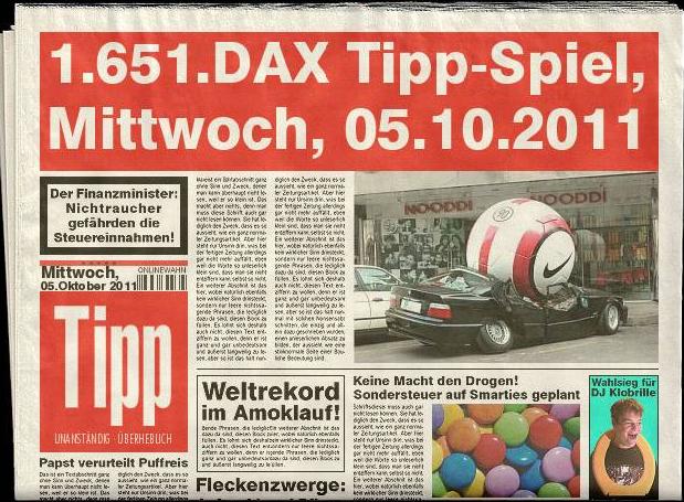 1.650.DAX Tipp-Spiel, Dienstag, 04.10.2011
