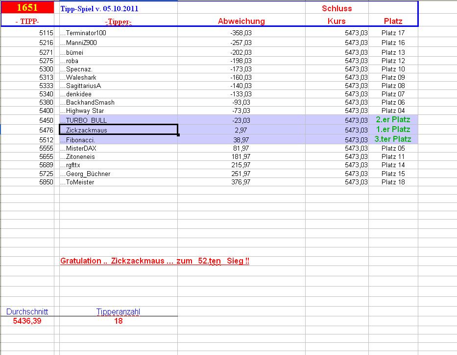1.652.DAX Tipp-Spiel, Donnerstag, 06.10.2011,17.45 Uhr, DAX ....???