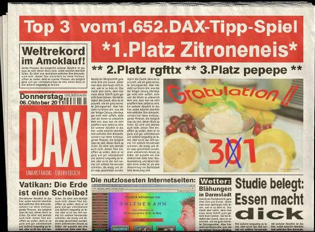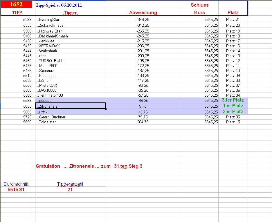 1.653.DAX Tipp-Spiel, Freitag, 07.10.2011,17.45 Uhr, DAX ....???