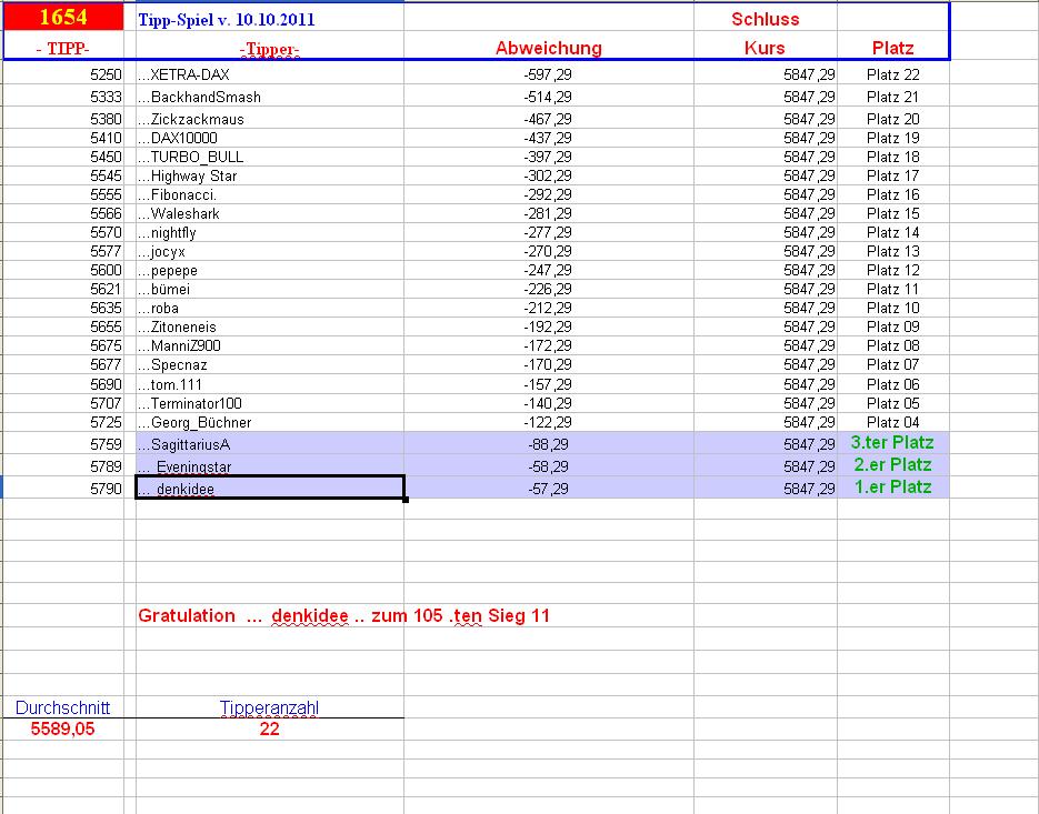 1.655.DAX Tipp-Spiel, Dienstag, 11.10.2011 447044