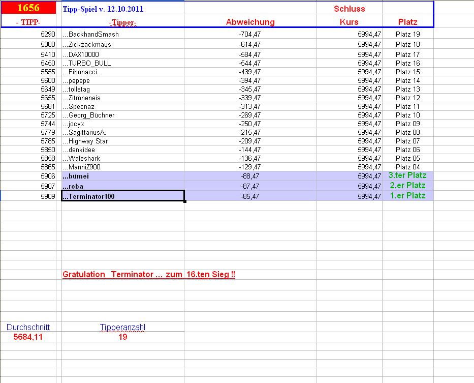 1.657.DAX Tipp-Spiel, Donnerstag, 13.10.2011 447888