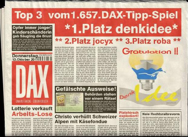 1.658.DAX Tipp-Spiel, Freitag, 14.10.2011,17.45 Uhr, DAX ....???