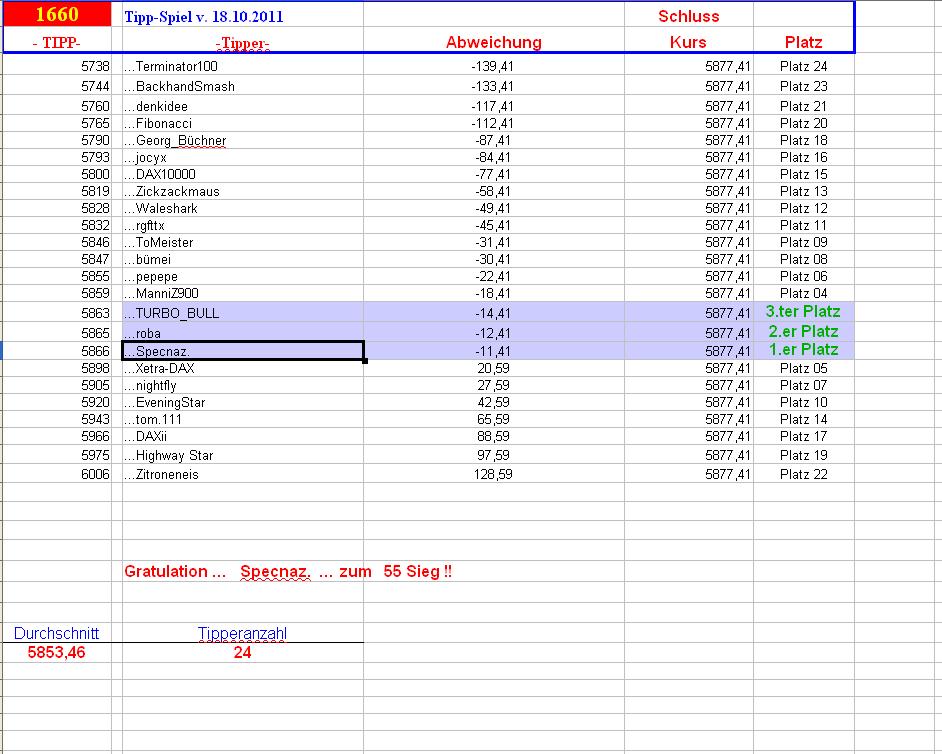1.661.DAX Tipp-Spiel, Mittwoch, 19.10.2011 449423