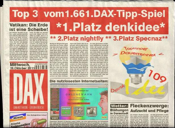 1.662.DAX Tipp-Spiel, Donnerstag, 20.10.2011,17.45 Uhr, DAX ....???