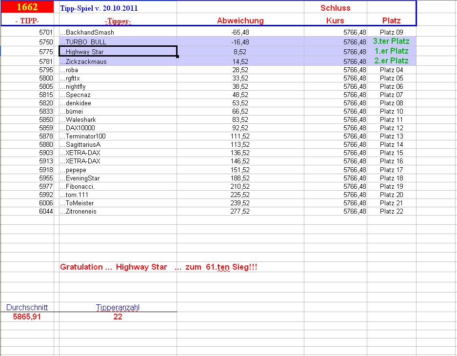 1.663.DAX Tipp-Spiel, Freitag, 21.10.2011,17.45 Uhr, DAX ....???