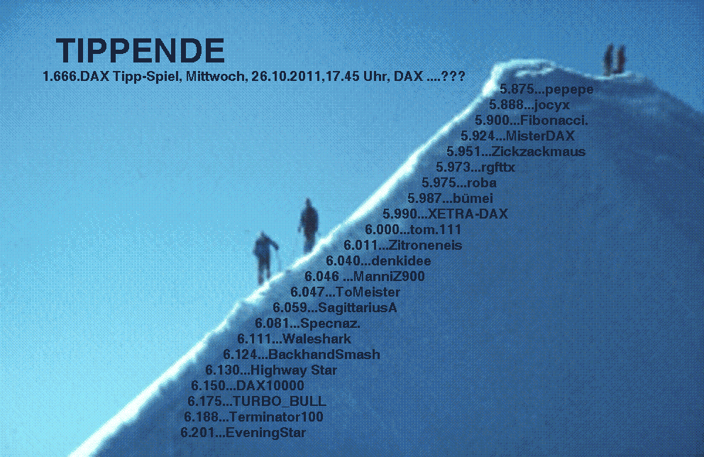 1.666.DAX Tipp-Spiel, Mittwoch, 26.10.2011,17.45 Uhr, DAX ....???