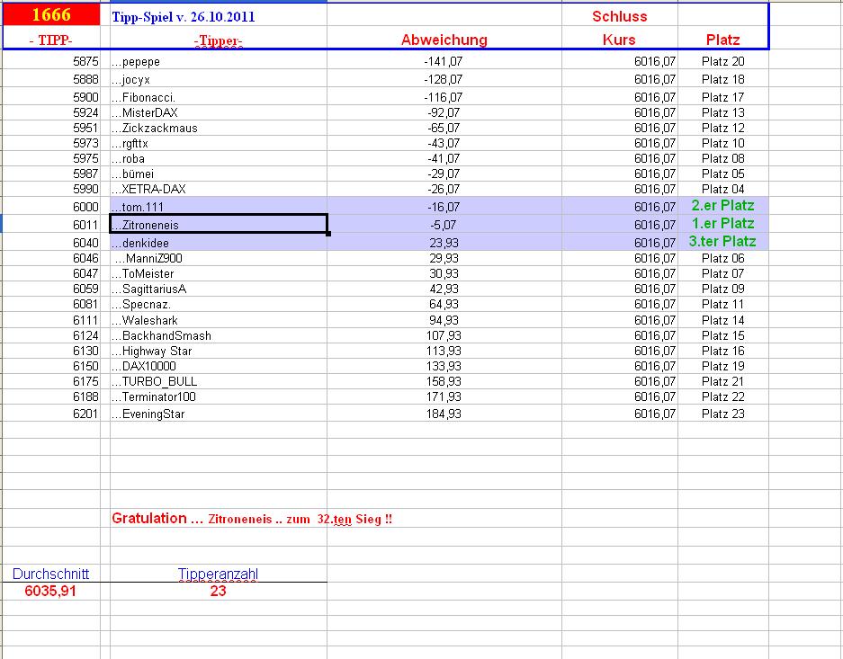Gewinnerlinks 1.665. DAX Tipp-Spiel, Dienstag  25.10.2011, 17.45 Uhr,  DAX  6.046.75