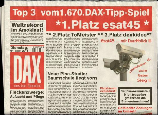 1.671.DAX Tipp-Spiel, Mittwoch, 02.11.2011