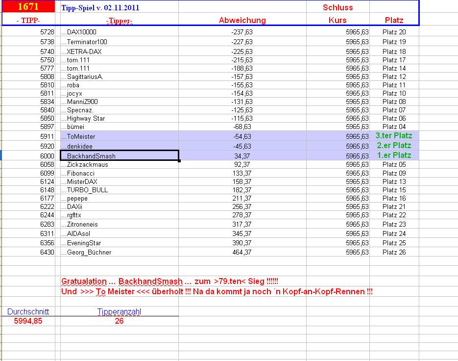 1.672.DAX Tipp-Spiel, Donnerstag, 03.11.2011 453564