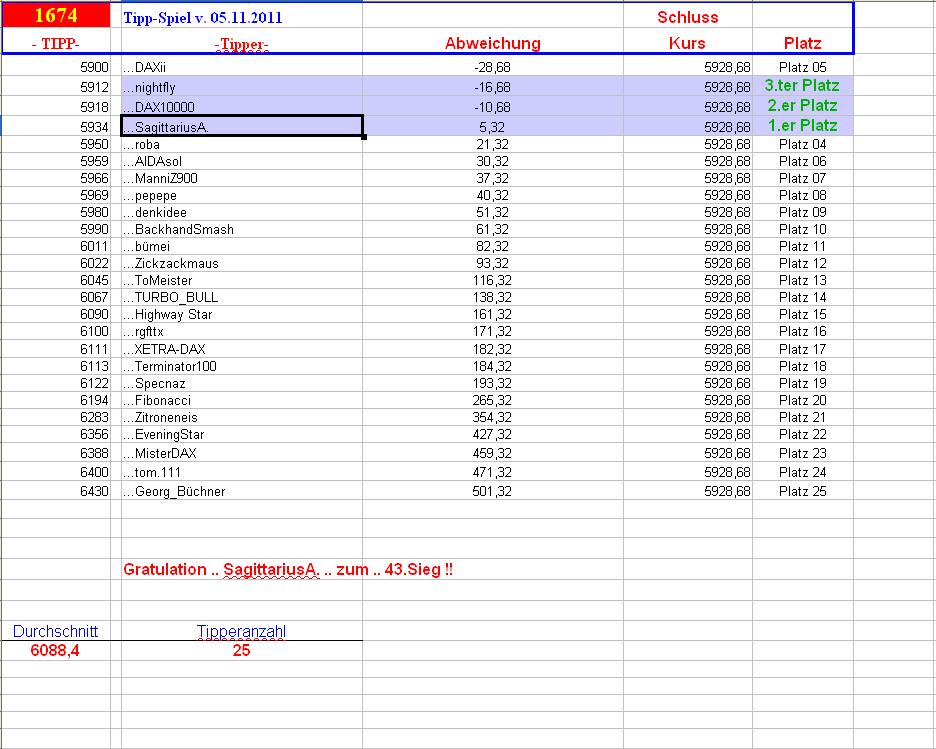 1.675.DAX Tipp-Spiel, Dienstag, 08.11.2011,17.45 Uhr, DAX ....???