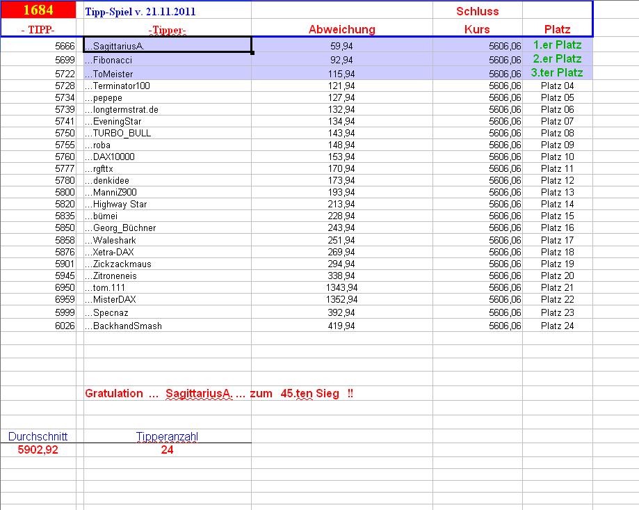 1.685.DAX Tipp-Spiel, Dienstag, 22.11.2011 459400