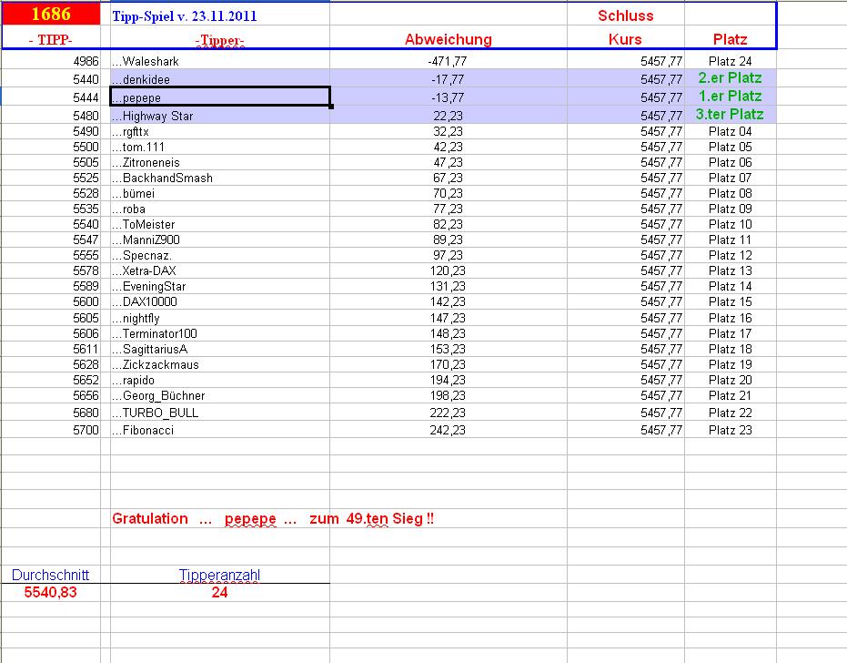 1.687.DAX Tipp-Spiel, Donnerstag, 24.11.2011,17.45 Uhr, DAX ....???