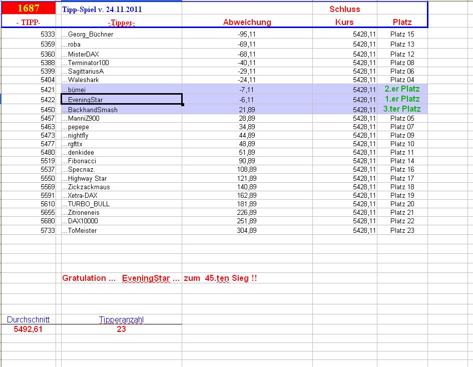 1.688.DAX Tipp-Spiel, Freitag, 25.11.2011 460503
