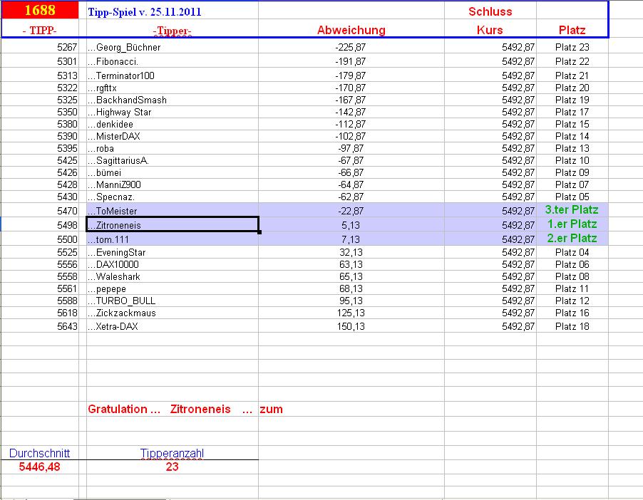 1.689.DAX Tipp-Spiel, Montag, 28.11.2011,17.45 Uhr, DAX ....???