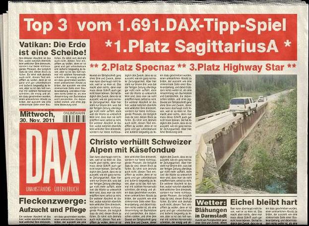 1.691. DAX Tipp-Spiel, Mittwoch den 30.11.2011, 17.45 Uhr, DAX 6.088.84