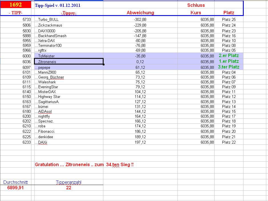 1.693.DAX Tipp-Spiel, Freitag, 02.12.2011 462932