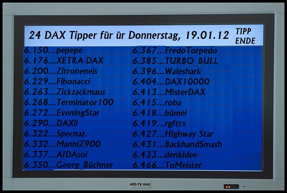 1.726.DAX Tipp-Spiel, Donnerstag, 19.01.2012, 17.45 Uhr, DAX ....???