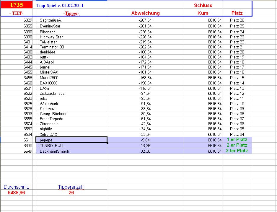 1.736.DAX Tipp-Spiel, Donnerstag, 02.02.2012