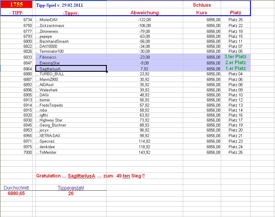 Gewinnerlinks 1.754. DAX Tipp-Spiel, Dienstag  28.02.2012, 17.45 Uhr,  DAX  6.887,63