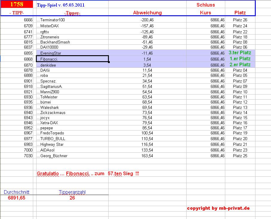 Gewinnerlinks 1.757. DAX Tipp-Spiel, Freitag den 02.03.2012, 17.45 Uhr,  DAX  6.921,37