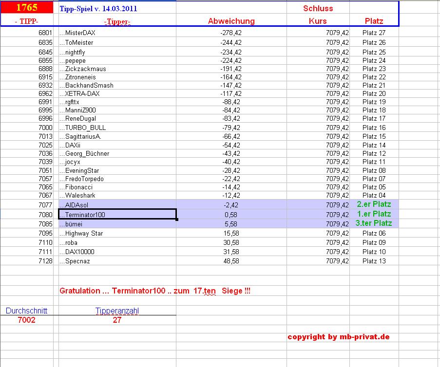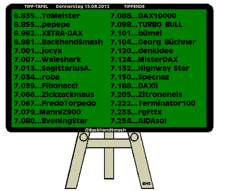 1.765. DAX Tipp-Spiel, Mittwoch den 14.03.2012, 17.45 Uhr, DAX 7.079.42