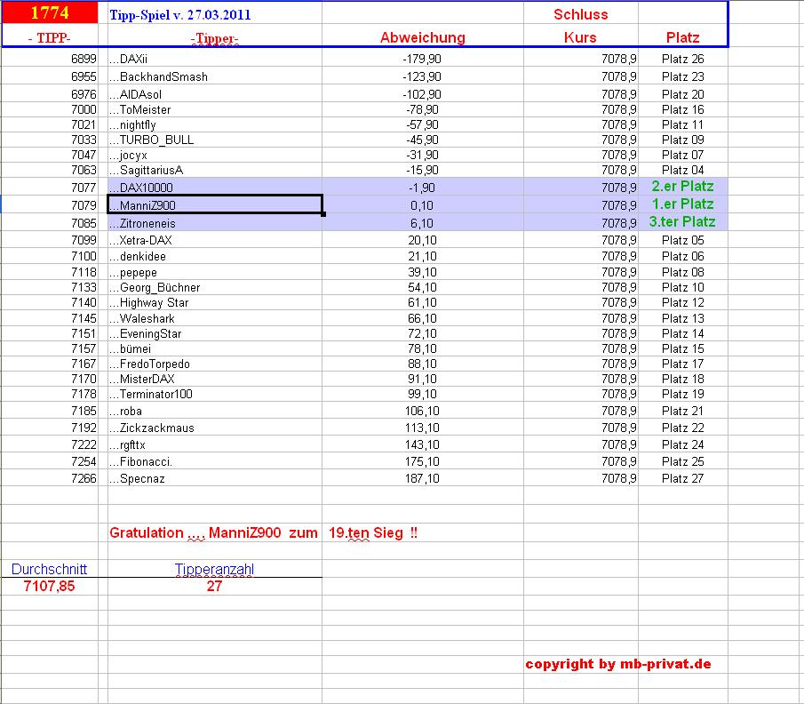 Gewinnerlinks 1.773. DAX Tipp-Spiel, Montag den 26.03.2012, 17.45 Uhr,  DAX  7.079.23