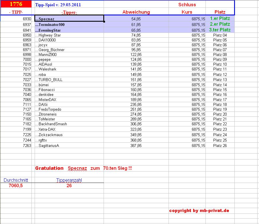 1.777.DAX Tipp-Spiel, Freitag, 30.03.2012 496596