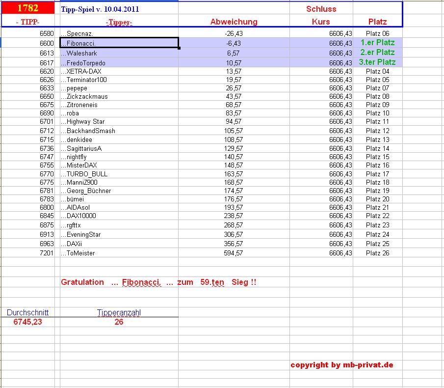 1.783.DAX Tipp-Spiel, Mittwoch, 11.04.2012 499497