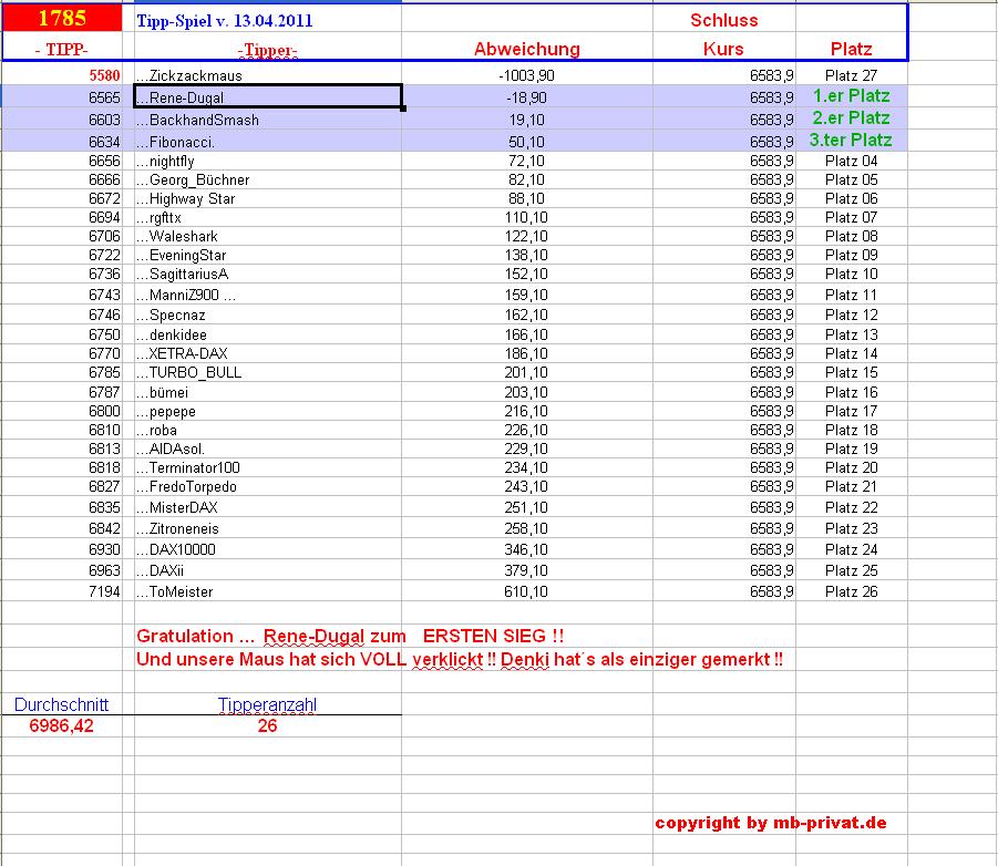 1.786.DAX Tipp-Spiel, Montag, 16.04.2012 500540