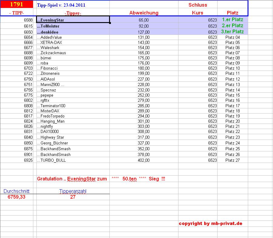 Gewinnerlinks 1.790. DAX Tipp-Spiel, Freitag 20.04.2012, 17.45 Uhr,  DAX  6.750.12