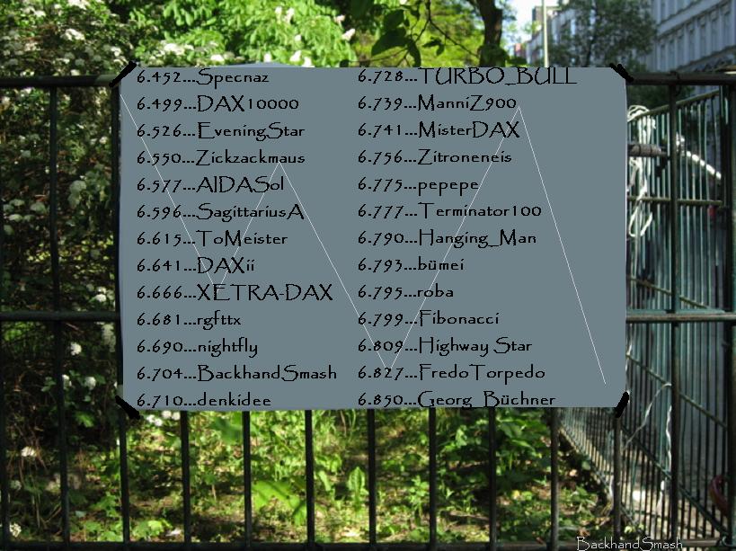 DAX10000, EveningStar, Zickzackmaus, AIDASol, SagittariusA, ToMeister, DAXii, XETRA-DAX, pepepe, Georg_Büchner