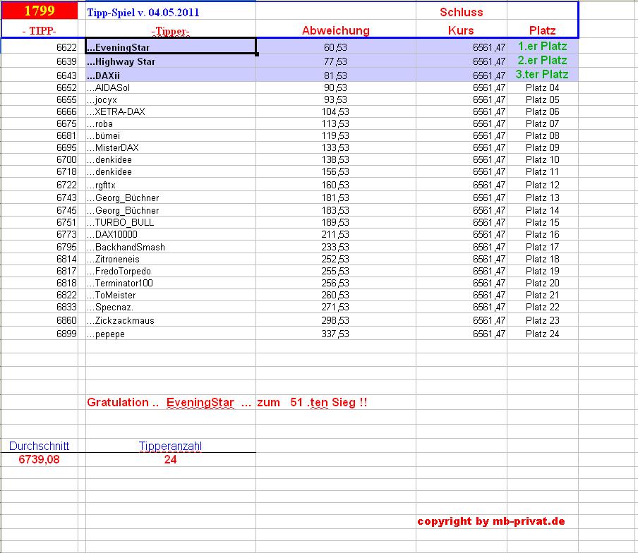 1.800.DAX Tipp-Spiel, Montag, 07.05.2012 506313