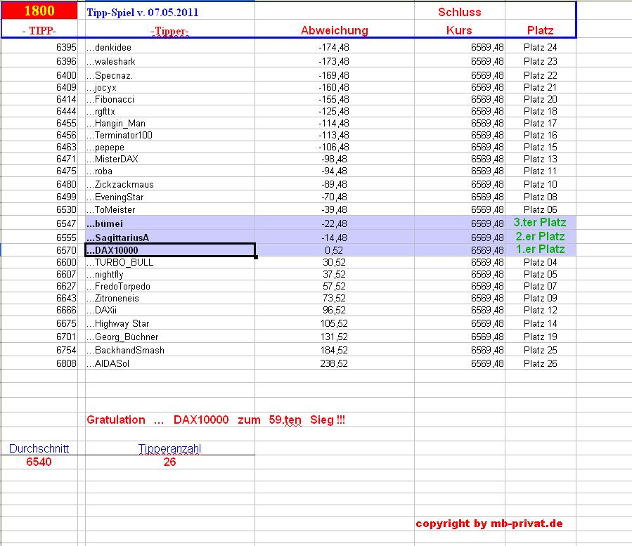 1.801.DAX Tipp-Spiel, Dienstag, 08.05.2012,17.45 Uhr, DAX ....???
