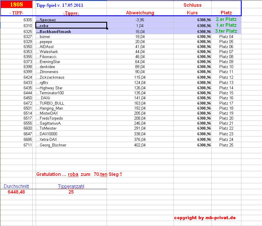 1.809.DAX Tipp-Spiel, Freitag, 18.05.2012,17.45 Uhr, DAX ....???