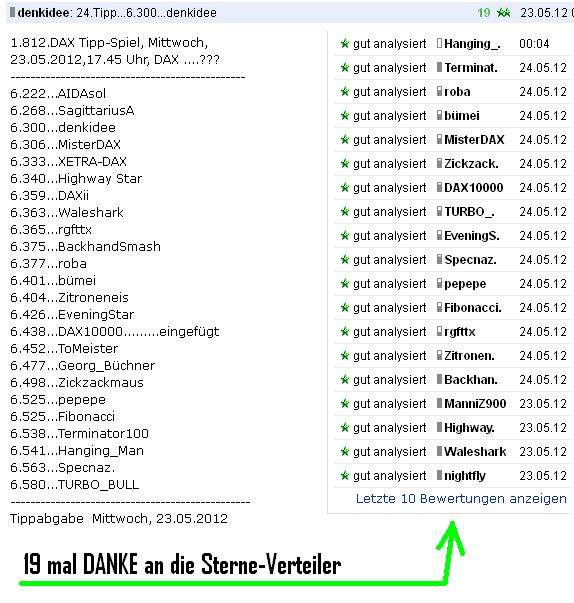 Gewinnerlinks 1.813. DAX Tipp-Spiel, Donnerstag 24.05.2012, 17.45 Uhr,  DAX  6.315.89