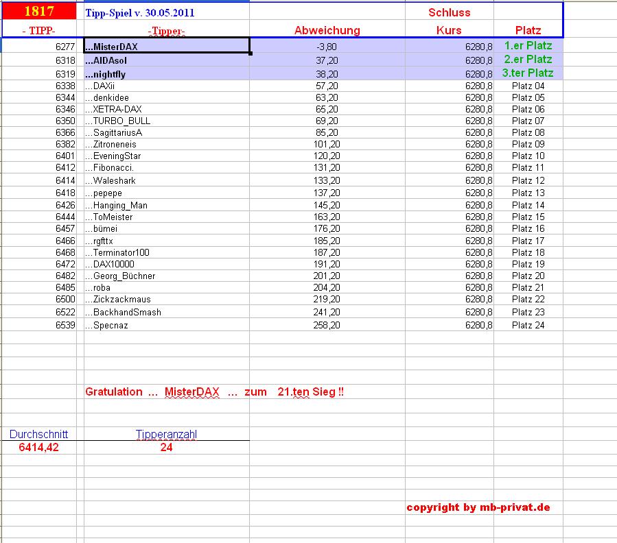 Gewinnerlinks 1.817.DAX Tipp-Spiel, Mittwoch, 30.05.2012 DAX........6.396,84