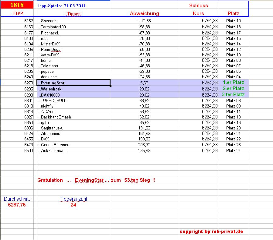 1.819.DAX Tipp-Spiel, Freitag, 01.06.2012 511249