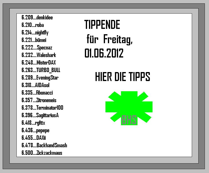 1.819.DAX Tipp-Spiel, Freitag, 01.06.2012,17.45 Uhr, DAX ....???