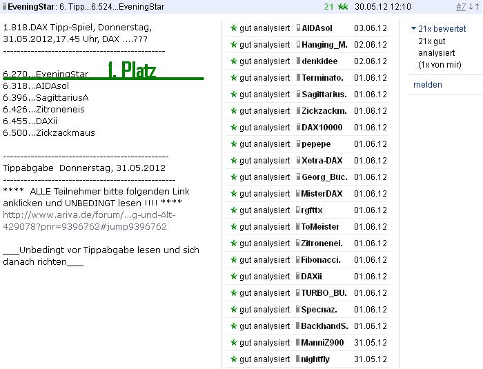 1.821.DAX Tipp-Spiel, Dienstag, 05.06.2012 513134