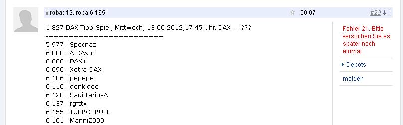 1.828.DAX Tipp-Spiel, Donnerstag, 14.06.2012,17.45 Uhr, DAX ....???