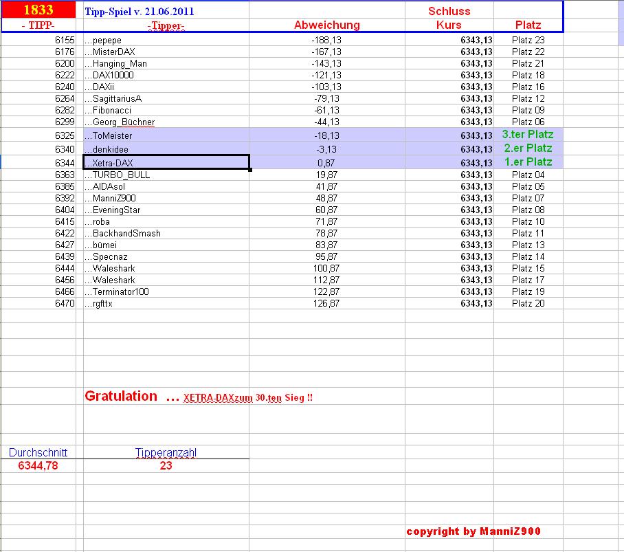 1.834.DAX Tipp-Spiel, Freitag, 22.06.2012,17.45 Uhr, DAX ....???