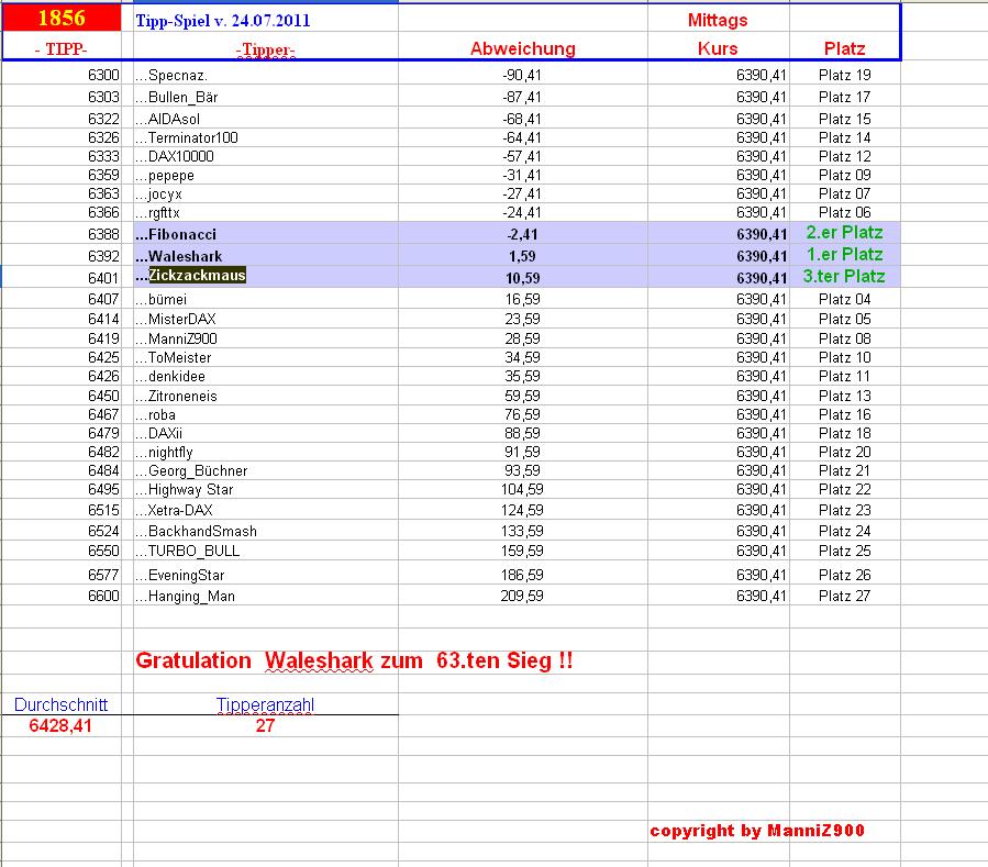 1.857.DAX Tipp-Spiel, Mittwoch, 25.07.2012,17.45 Uhr, DAX ....???