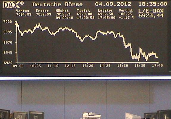 1.887.DAX Tipp-Spiel, Mittwoch, 05.09.2012, 17.45 Uhr, DAX 6.964,69