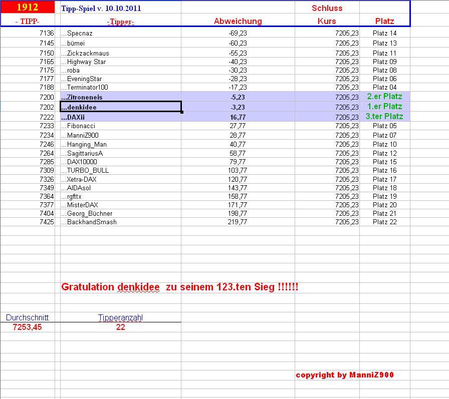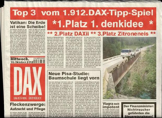 1.913.DAX Tipp-Spiel, Donnerstag, 11.10.2012,17.45 Uhr, DAX ....???
